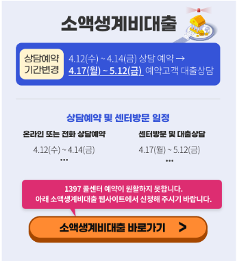 저신용자 소액생계비대출은 서울 등은 일부 지역은 예약 상황에 따라 조기에 예약이 마감되어 신청이 어려울 수 있습니다. 서둘러 신청해야 합니다. 지원 대상이 되는지 아래 바로가기에서 지금 확인해 보세요. 자세한 내용은 아래에서 살펴보겠습니다.
