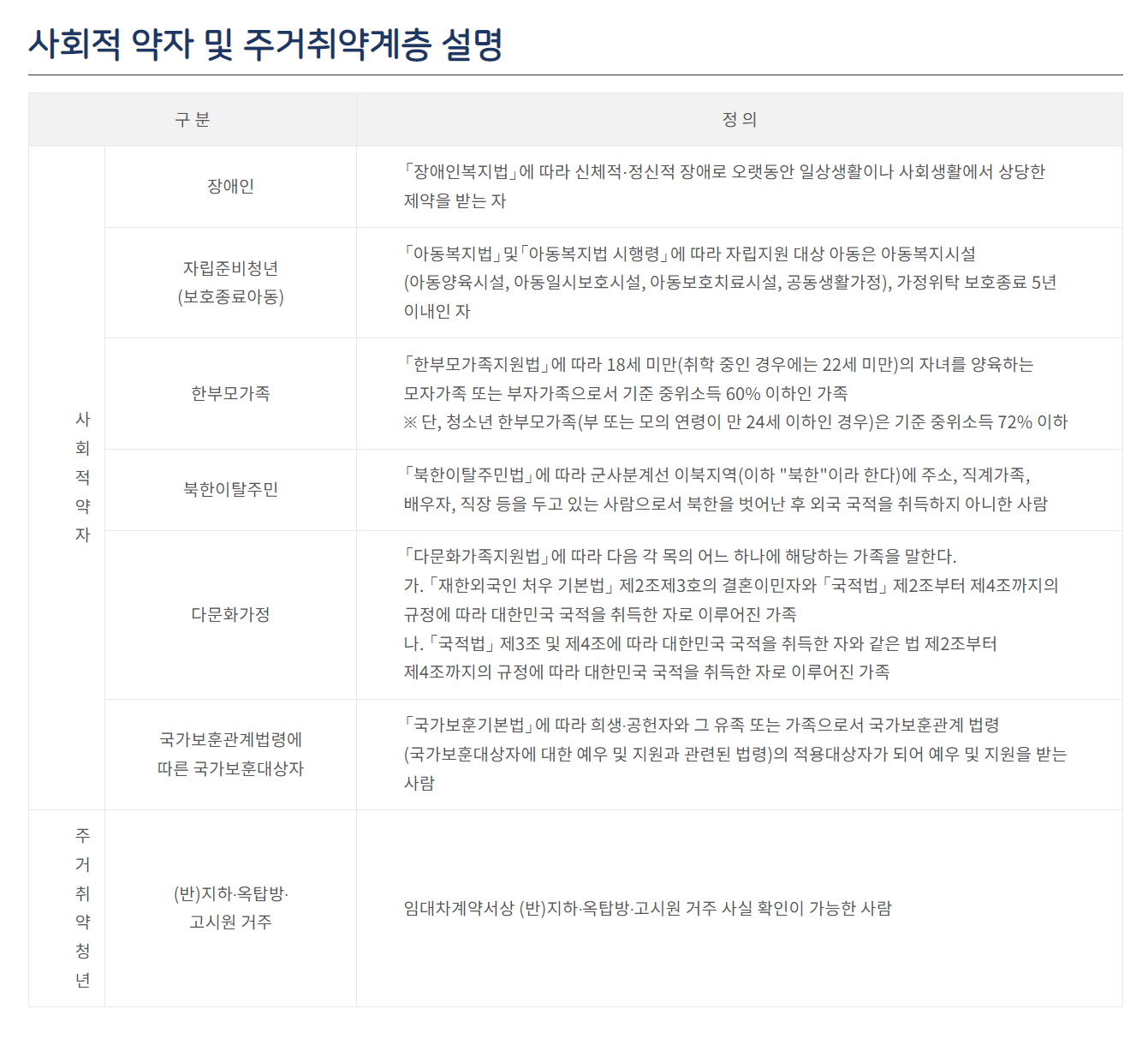 - 소득 : 가구당 기준 중위소득 150% 이하