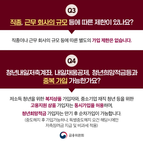 Q4. 청년내일저축계좌, 내일채움공제, 청년희망적금 등과 중복가입 가능한가요?